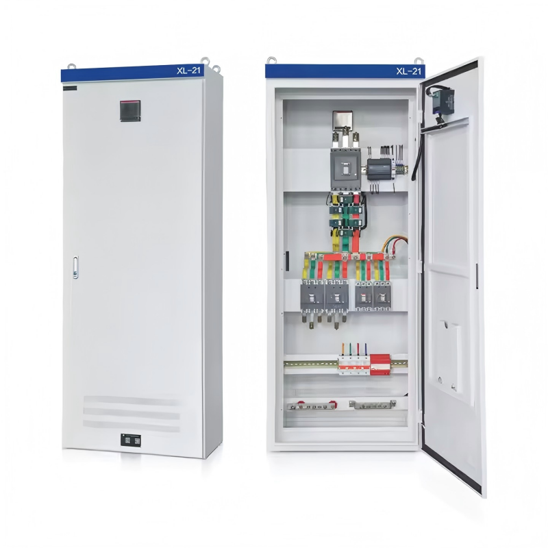 XL-21 lavspent strømdistribusjonsskap brukes primært til kraftdistribusjon i industri- og gruvebedrifter som bruker trefase, tre-leder og trefase fire-leder systemer med AC-frekvenser opp til 50 Hz og spenninger opp til 500 V, samt for strømbelysning. Det er et lukket kabinett konstruert av bøyde stålplater. Knivbryterens betjeningshåndtak er plassert på øvre høyre frontsøyle, og gir strømbryter. Et voltmeter er installert på fordelingspanelet for å indikere samleskinnespenningen. Inngangsdøren avslører alle interne komponenter for enkel inspeksjon og vedlikehold. Dette distribusjonsskapet bruker toppmoderne komponenter, noe som resulterer i en kompakt design, enkelt vedlikehold og fleksible ledningskonfigurasjoner. I tillegg til luftbrytere og sikringer for kortslutningsbeskyttelse, har skapet også kontaktorer og termiske reléer. Frontdøren rommer knapper og indikatorlys.